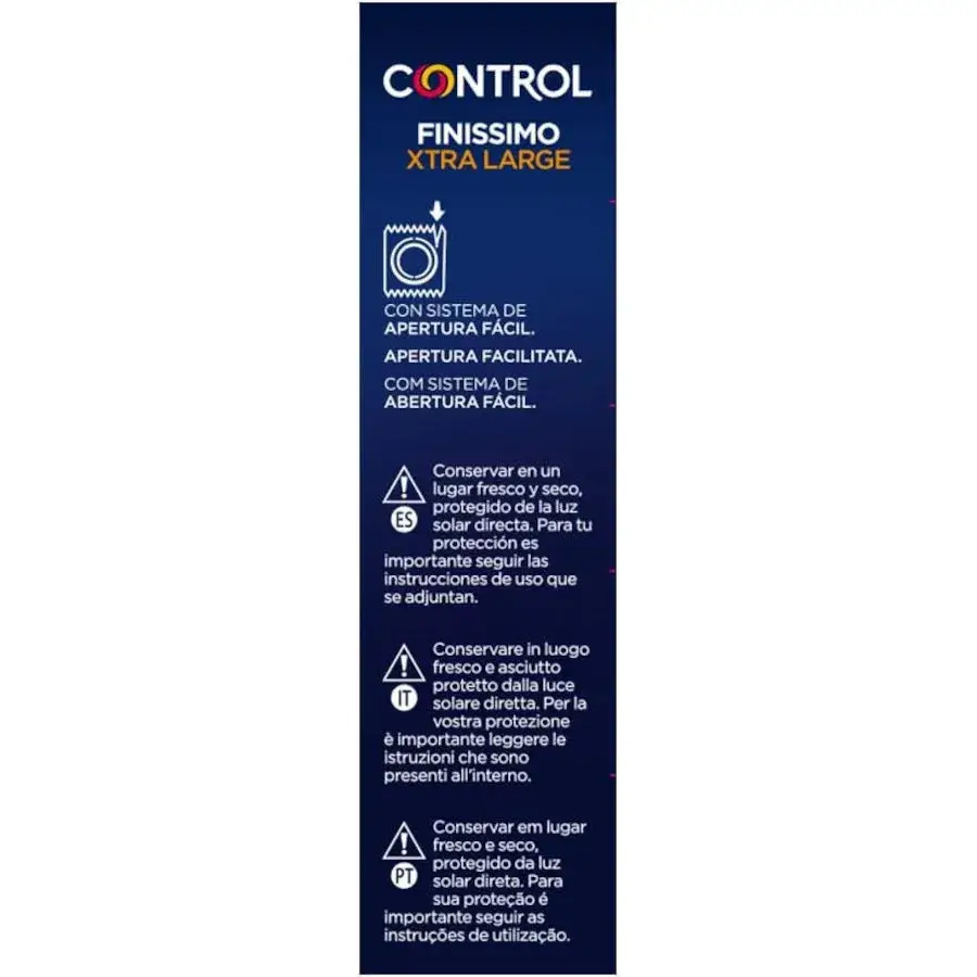 Finissimo Xtra Large 0.05 mm è dedicato a chi vuole elevata sensibilità e comfort durante il rapporto: molto sottile, con ampiezza e lunghezza superiori agli altri modelli della gamma Control, è il preservativo più sottile della gamma e permette di vivere intensamente ogni momento di passione.