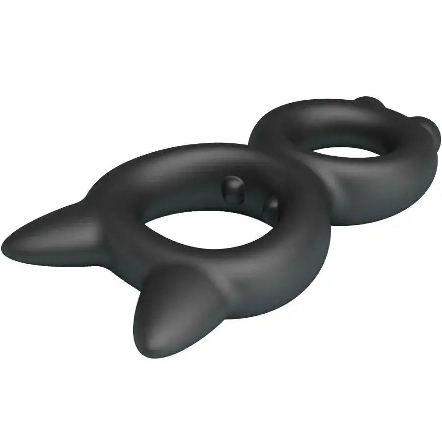 Doppio anello per pene e testicoli in silicone nero ‘Toran’ CRAZY BULL