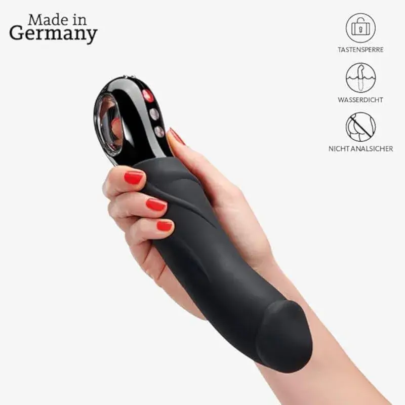 Le dimensioni, in questo caso, fanno davvero la differenza. Con i suoi imponenti 23 cm di lunghezza totale (di cui 16,5 cm pronti ad accarezzarti nel profondo) e un diametro massiccio di 4,6 cm, il vibratore Big Boss di Fun Factory è un’esperienza di piena soddisfazione. Ricoperto in morbido silicone nero dalla texture vellutata, questo sex toy per il punto G dal design audacemente realistico è studiato per regalarti una pienezza assoluta.